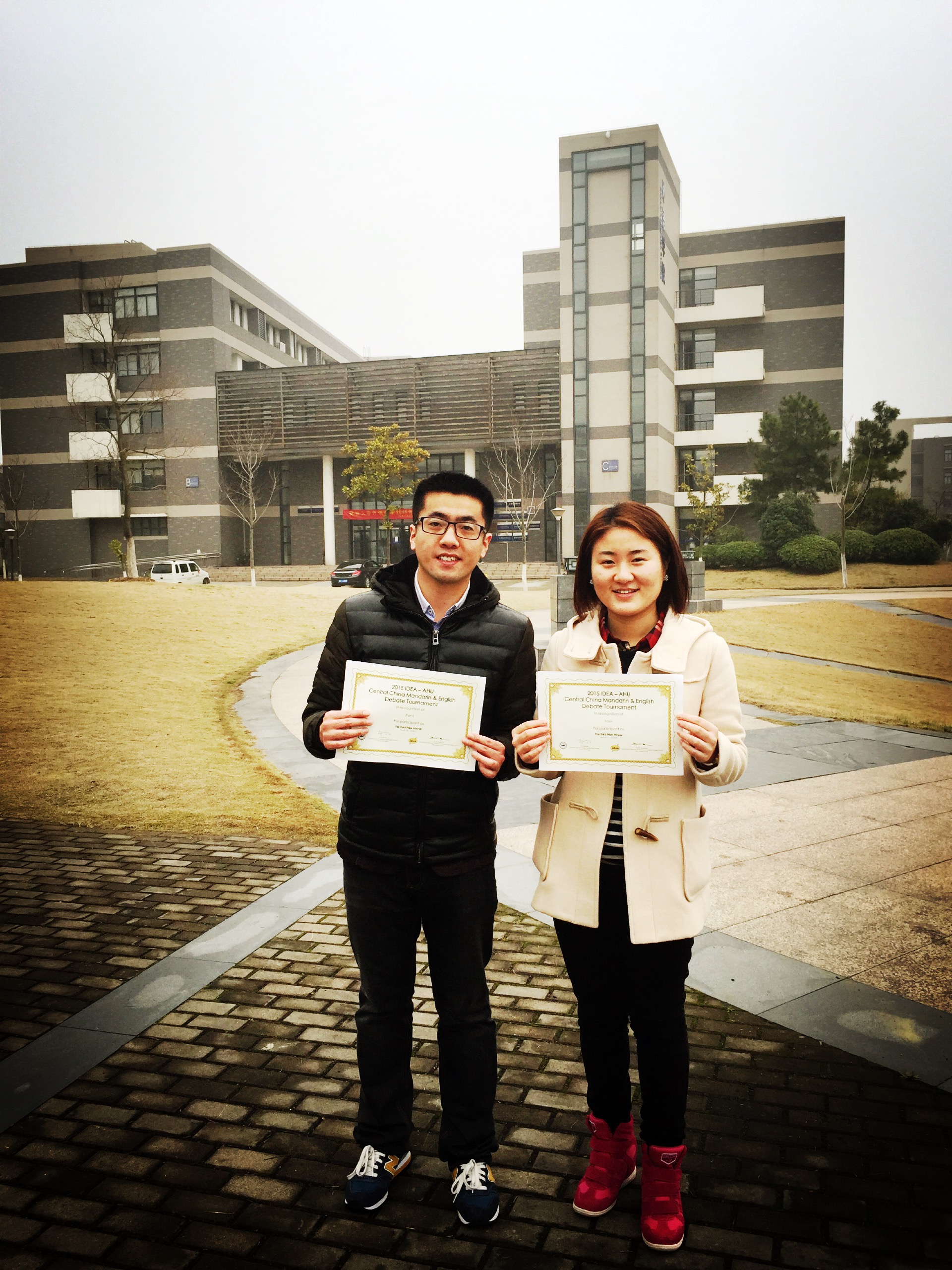 2015年3月13日至15日,第八届国际辩论教育协会华中地区中英文辩论赛在安徽大学隆重举行。我校教育学院刘继超和医学院的仲璐敏在开元网页版戴融融老师指导下,参加了英文组的比赛,取得了三等奖的好成绩。