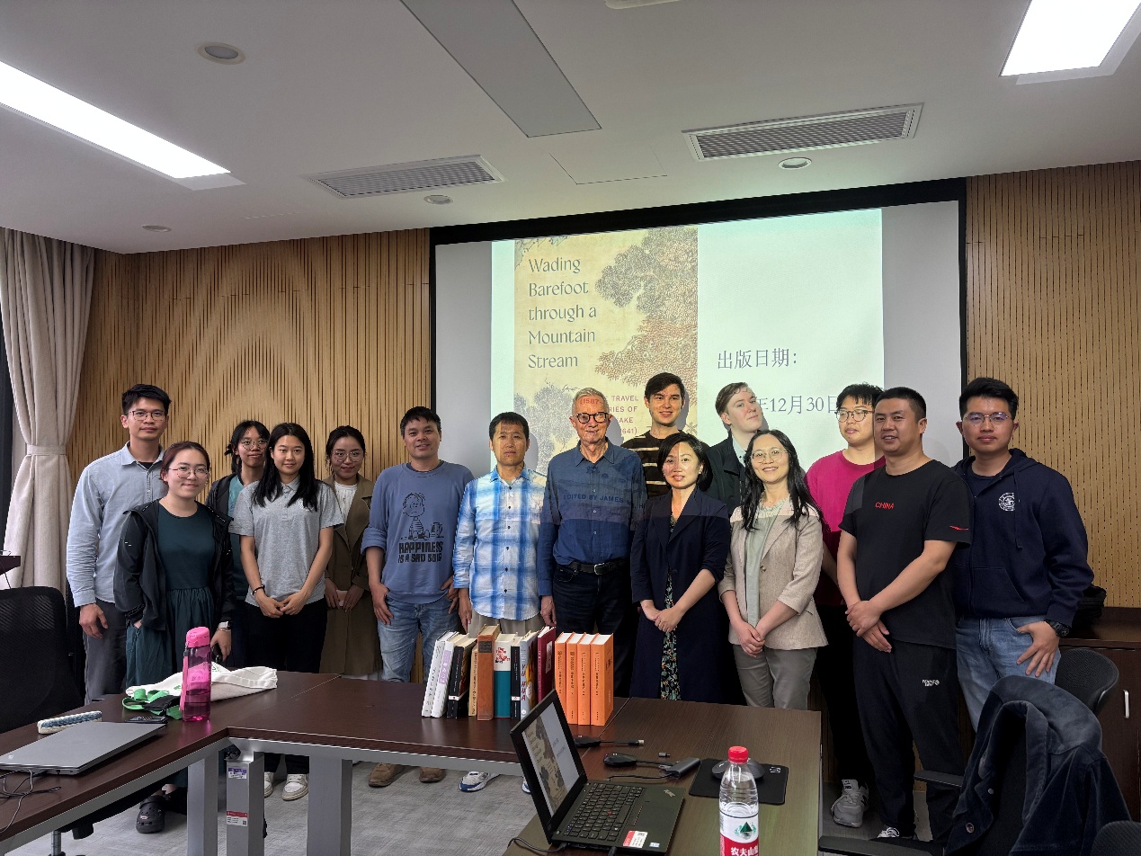 2025年5月8日下午,著名汉学家、翻译家、美国加州波莫纳学院(Pomona College)荣休教授白亚仁(Allan Hepburn Barr)应邀访问开元网页版。白亚仁首先作了“《徐霞客游记》翻译苦乐谈”学术讲座。讲座由翻译与跨文化中心王金波老师主持,来自不同专业的师生踊跃参加。