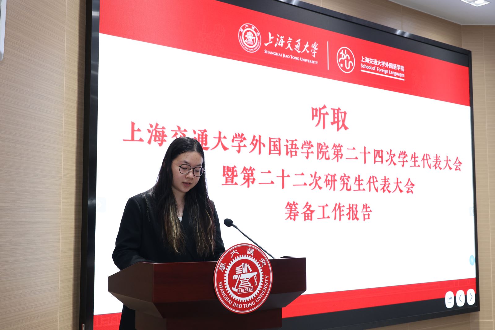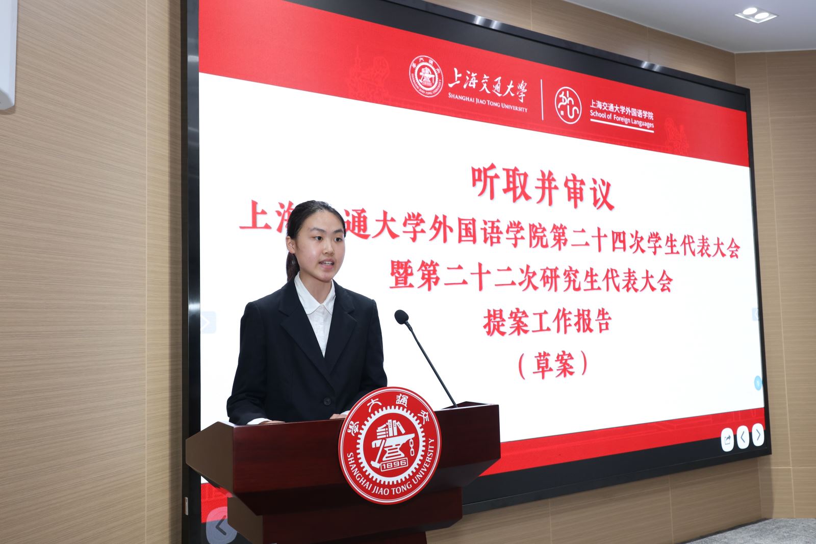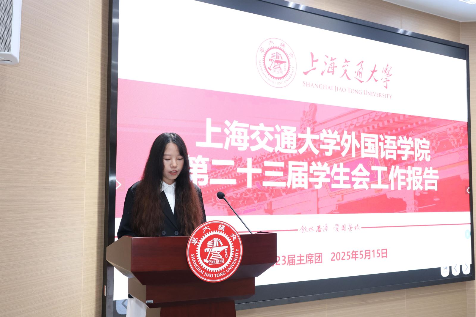 学院第二十三届团委学生会主席团成员朱珈萱向大会作团委学生会工作报告。过去一年,学院学生会围绕学术支持、对内服务、对外联动、公益担当等方面开展系列工作,致力于搭建开放共享的学术交流平台、整合资源推进学院品牌建设、优化宣传体系提升传播效能,同时进一步明晰学生会职能分工,聚焦学生需求,为校园文化建设贡献外院力量。