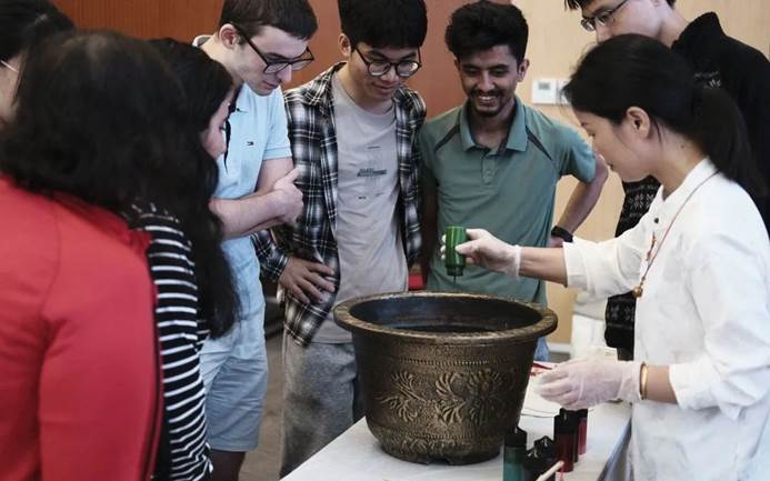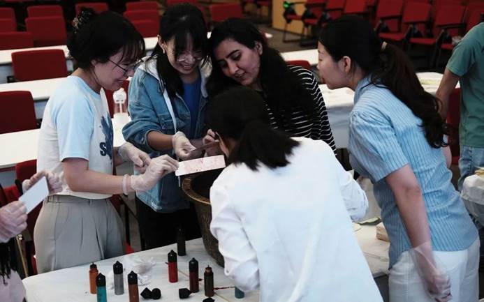 本次非遗文化多语言体验活动吸引了来自物理与天文学院、开元网页版、安泰经济与管理学院、化学化工学院等多个院系的中外学生参与。活动现场通过双语科普、漆扇制作等交流和实践环节,使参与者在互动体验中深化对中国传统节气文化的认知。活动不仅展现了自然科学与传统文化的深度融合,也为跨学科交流提供了创新样本。