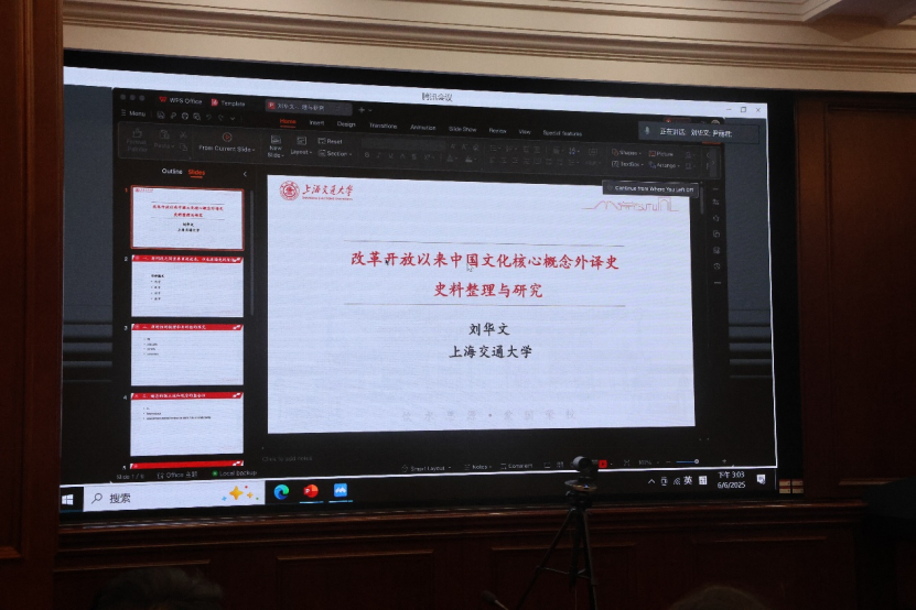 重大课题攻关项目首席专家朱一凡向评审组专家汇报了课题整体设计及推进情况。她重点阐述了四个核心问题:中国文化核心概念的界定标准、外译史研究目标、多语种文献筛选方法及数据库建设路径。研究选取具有中华文明标识的核心概念,以多语典籍译本为素材,采用数字人文的方法,探究概念外译变迁的演变规律并构建智能数据库平台。项目分五个子课题推进,最终将产出《中国文化核心概念外译史论》的专著和智能数据库,助力提升中华文化外译研究。