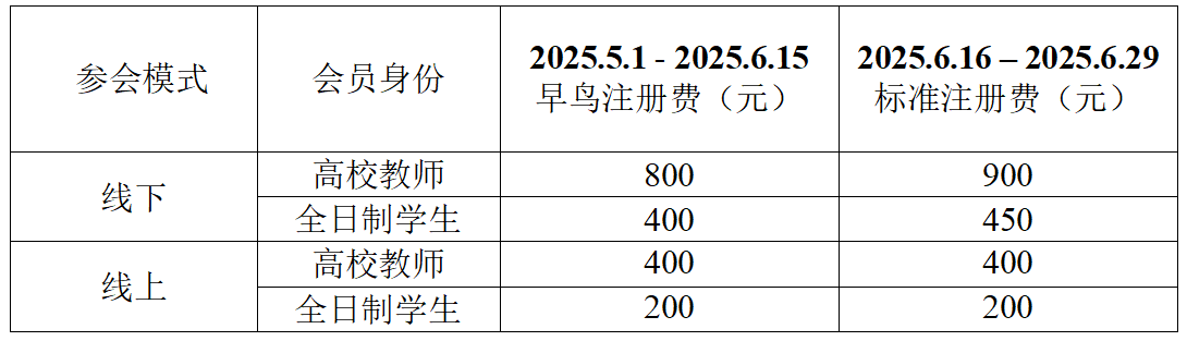 注:全日制学生3人一起报名参会的,可在以上注册费基础上每人减免50元;四人以上一起报名,每人减免100元。