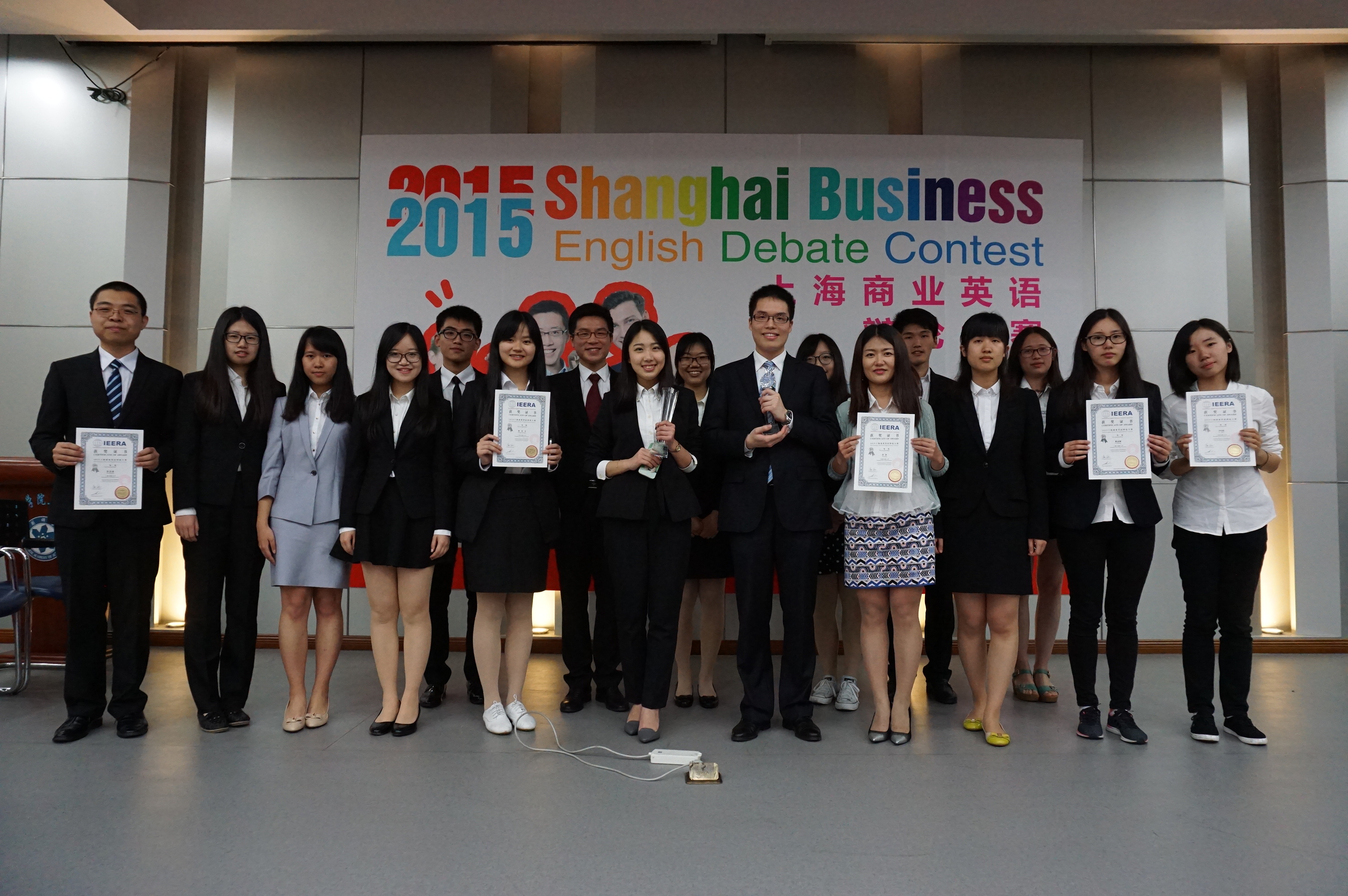 2015年5月9日,上海市科技翻译学会、国际英语教育研究协会上海认证中心(IEERA)和中科院上海分院在中科院上海分院教育基地隆重举办了2015上海商业英语辩论大赛决赛。上海交通大学开元网页版英语专业学生梅敏程、汪璐,以及第二专业为英语专业来自人文学院的学生李梦泽组成的队伍,在开元网页版英语系戴融融老师的指导及带队下参赛,经历一个月的激烈角逐,从近120支沪上各知名学府的参赛队伍中脱颖而出,荣膺大赛冠军。上海交通大学安泰与经济管理学院金融专业学生龚承安荣获本届比赛“最佳辩手”称号。戴融融荣获上海交通大学优秀组织奖以及指导教师奖。