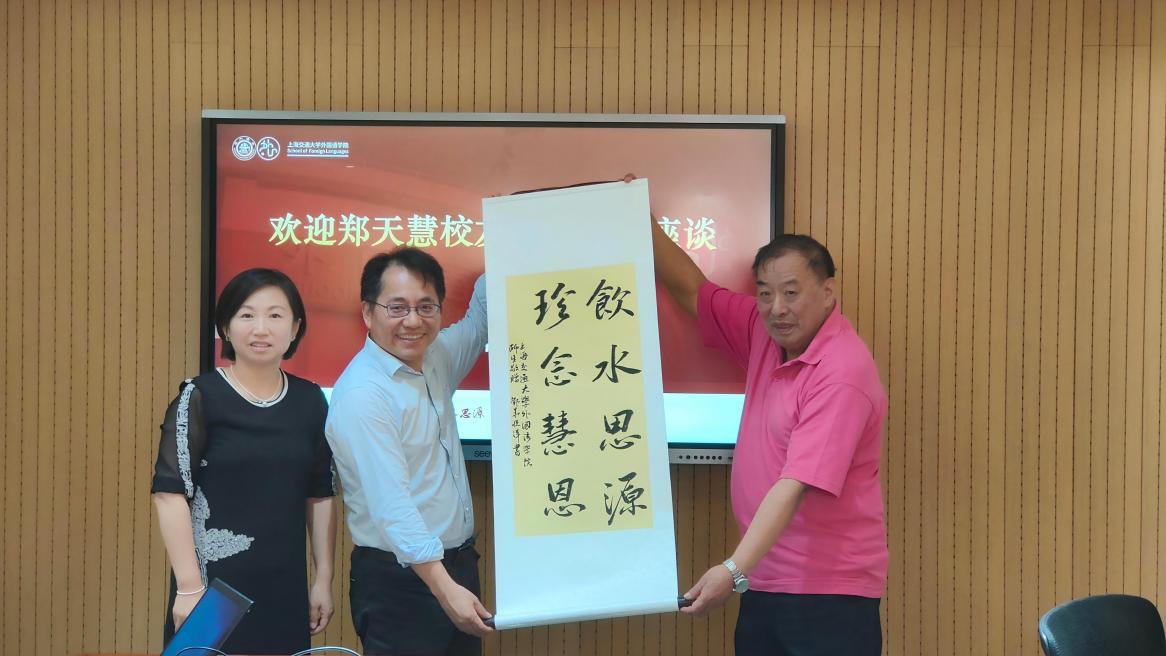 座谈会结束后,学院向郑天慧校友赠送学生书法作品“饮水思源,珍念慧恩”,以表达敬意与感谢。