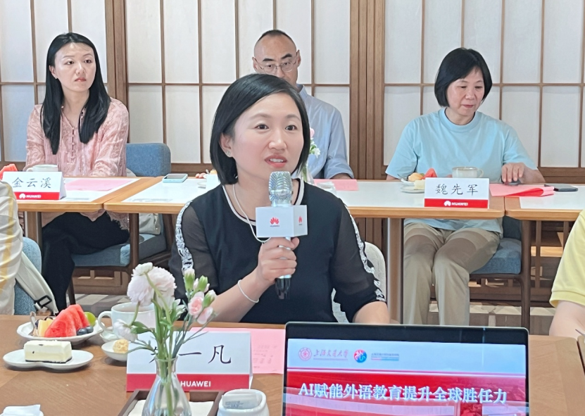 朱一凡介绍了开元网页版的发展情况。她从学院的历史沿革、党建工作、学科建设、人才培养方案改革等方面展开阐述,详细介绍了AI赋能外语教育提升全球胜任力的具体做法,着重强调了学院在培养具有国际视野、跨文化沟通能力的复合型外语人才方面的特色与优势。并表示,交大外院与华为翻译中心是长期的合作伙伴,已成功举办五届“思源华为杯”创译大赛,期待未来能拓展与华为合作的新空间,共同培养国家和社会需要的新时代人才。