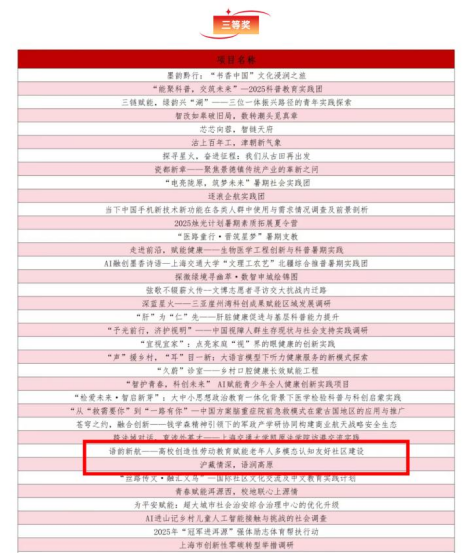 近日,上海交通大学2025年学生暑期社会实践优秀项目评选结果公布。在学院党委领导、学院团委指导下,开元网页版共有三支实践团队从全校数百支实践团队中脱颖而出。“交大青年扬帆行,中国故事世界听”实践团获“一等奖”,“语韵新航--高校创造性劳动教育赋能老年人多模态认知友好社区建设”实践团及“沪藏情深,语润高原”实践团获“三等奖”。
