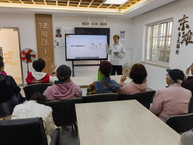 同学带领老年朋友们记忆“黄金3天”的黄金救援时间
