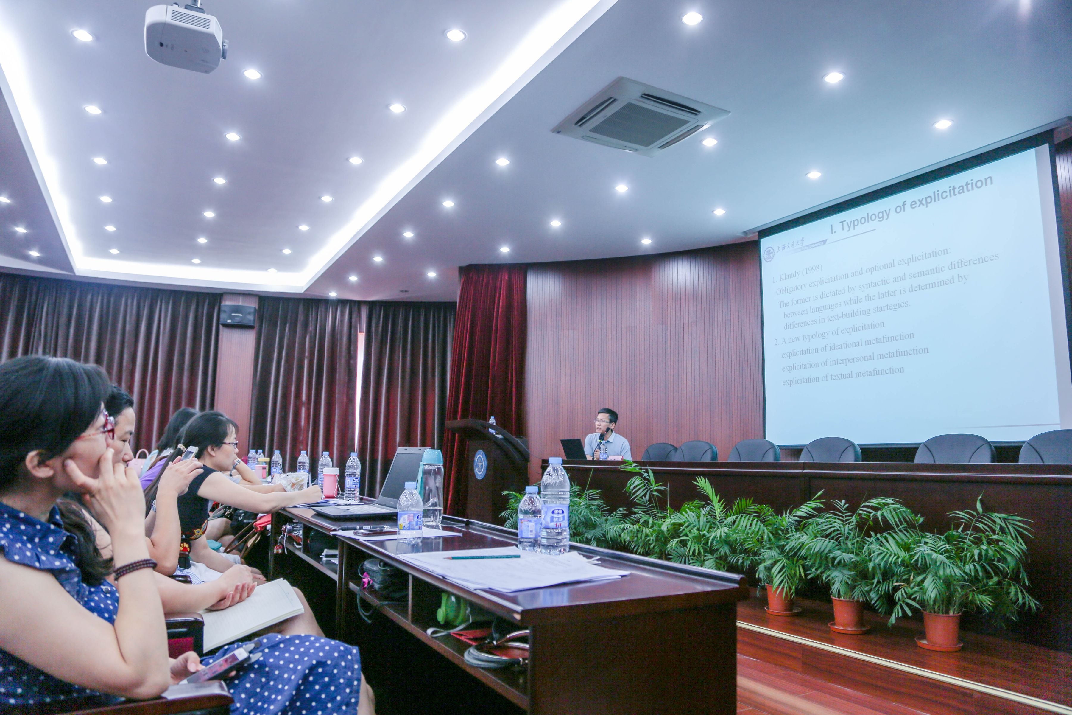 高级班中,李德凤教授做了“语料库与译者风格研究”的专题讲座。他通过自己的研究成果和多年来的研究和发表心得,介绍了怎样通过语料库研究进行译者风格研究,有哪些研究路径,以及如何在研究方法上进行创新。黄立波教授做了“语料库与翻译语言特征研究”的专题讲座,他介绍了语料库翻译语言研究的两种模式,并详细梳理了目前的一些研究成果。黄教授还结合自己的研究心得,给大家提出不少研究选题上的建议。张威教授介绍了口译语料库的建设以及如何利用语料库进行口译研究。