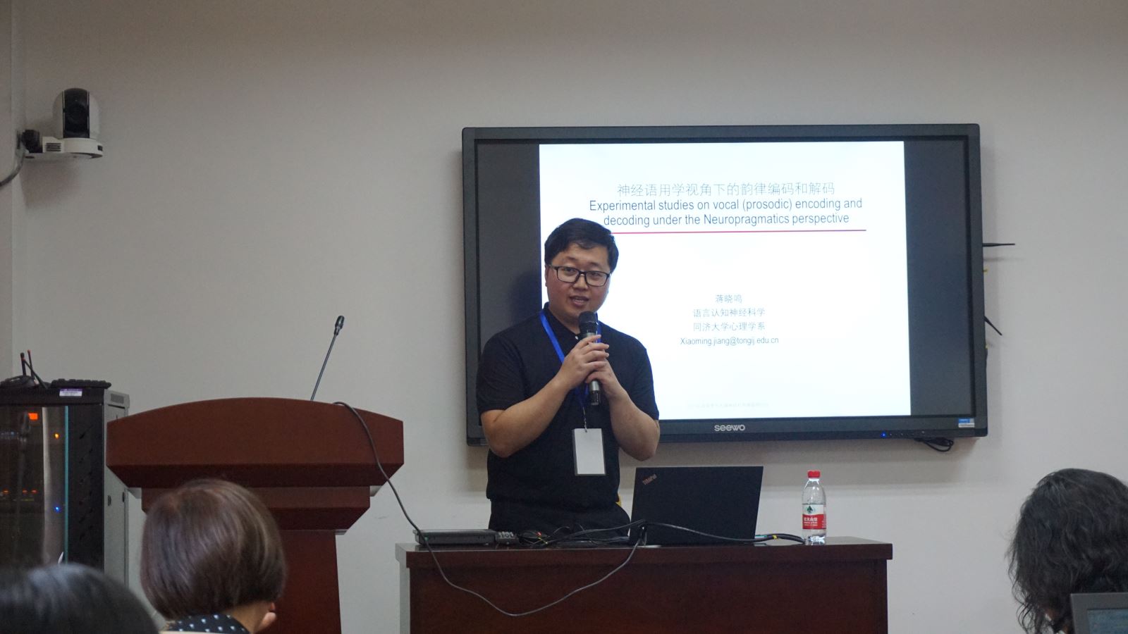 Next, Jiang Xiaoming, Associate Professor of psychology at Tongji University, introduced the recent development trend of psycholinguistics with the topic of “Prosody Coding and Decoding from the Perspective of Neurolinguistics”. That is, traditional psycholinguistics pays more attention to language research, but less attention to non-verbal parts, while recent linguistic studies have begun to focus on gender, identity, mental state, etc. Social norms, personal experience, cultural background, educational background, speaking habits, interpersonal sensitivity, etc. can all have certain impacts on specific expressions. In social networks, through computational and statistical modeling, speakers can reveal different communicative purposes. For example, vocabulary rereading, focus or emphasis in rhythm can reflect an individual's communicative position and attitude. It can extract the deep evaluation, intention and social relationship of the speaker.