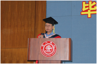 Professor Hu Kaibao started the ceremony by congratulating the Class of 2019 on their outstanding academic performance for the past four years. He mentioned three expectations concerning “boundary” . First is about how to stick to academic boundaries. Students should understand the boundaries in majors and disciplines, gain proficiency in their own area,  but also have the courage to break through these boundaries. Second, how to stick to management boundaries. In their future work, students should do their best in their own positions and but also learn to be flexible about boundaries: do more than required, cooperate with others and work together as one. Third, how to stick to moral boundaries. Students should abide by the moral and legal boundaries, and uphold their moral integrity as intellectuals.