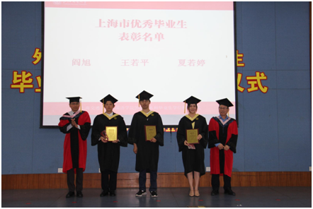Together with Professor Hu Kaibao, SFL Party Secretary Ding Jian read the namelist of “2019 Shanghai Outstanding Graduates” and “2019 SJTU Outstanding Graduates”, and awarded medals and honor tassels to outstanding graduates .