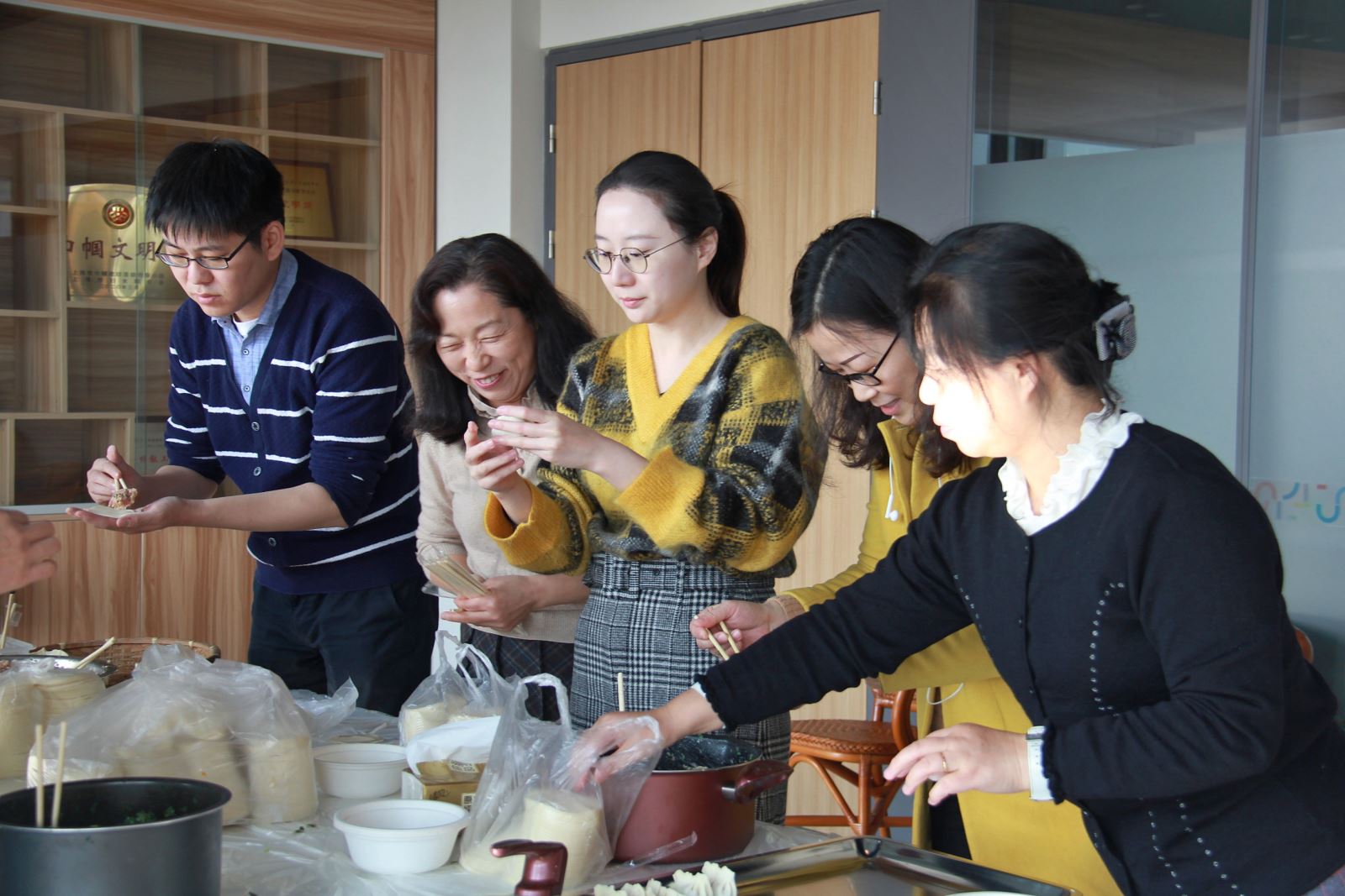 More than 60 faculty of School of Foreign Languages (hereafter referred to as SFL), Shanghai Jiaotong University, gathered together to make Chinese dumplings at Yang Yongman Building on Dec 17th to welcome the Chinese New Year.