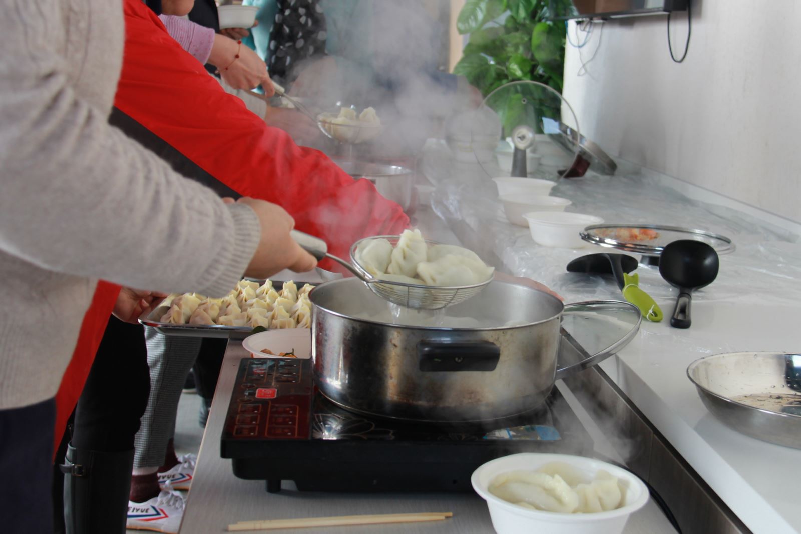 When the dumplings were dancing in the boiling water, people gathered before the pots and can’t wait to have a bite of the dumplings made by their own hands.
