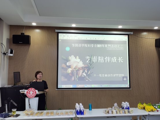 In order to care for the growth of "Seedling of SJTU" of the School of Foreign Languages(SFL), enhance their appreciation of art and beauty, experience the inexhaustible fun of artistic creation, and spend a happy and meaningful Children's Day, SFL held a Parent-Child Activity of Pulp Painting named “Art, My Companion in Growing Up" to celebrate International Children's Day on the evening of May 29, 2021. A total of 15 units of faculty family registered in the activity, which took place in Room 107 of Yang Yongman Building. Zhu Yifan, Vice Secretary of CPC SFL Committee, and Zhao Xiaohong, Chairman of SFL Trade Union, and more than 30 staff members from different departments and offices of SFL participated. Yang Xiaohong, who was in charge of SFL women’s affairs, planned and presided over the event.