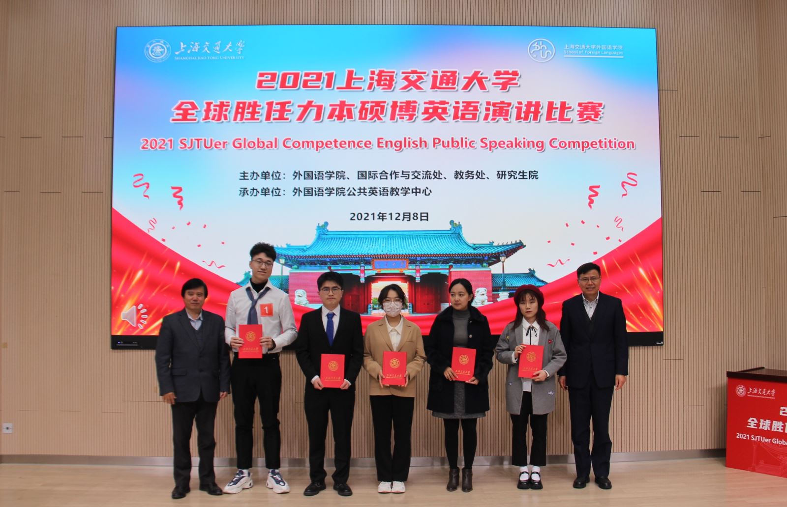 The first SJTUer "Global Competence" English Public Speaking Competition, which was jointly organized by the School of Foreign Languages, International Affairs Division, Academic Affairs Office and Graduate School of Shanghai Jiao Tong University, was held in the East Central Hall of Minhang Campus on the afternoon of December 8, 2021. Wu Jingyi, Vice Provost of Shanghai Jiao Tong University, Luo Peng, Director of International Affairs Division, Wang Yaguang, Dean of Graduate School, Xu Zhenli, Deputy Director of Academic Affairs Office, Guo Liang and Chen Ke, Deputy Director of International Affairs Office, Ding Jian, Secretary of CPC SFL Committee, Chang Hui, Executive Associate Dean of SFL, Tao Qing, Associate Dean of SFL and Zhu Yifan, Vice Secretary of CPC SFL Committee were invited to attend the competition.