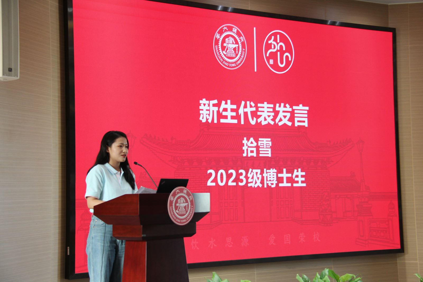 Ren Haoran, a 2023 postgraduate student of Master of Translation, and Shixue, a PhD student, spoke on behalf of the freshmen. Combining with her undergraduate study experience in the School of Foreign Languages, Ren Haoran expected students to take root in the forefront of the collision between China and the West, taste the charm of interdisciplinary studies, strengthen cultural self-confidence, overcome "difficulties and urgencies", and contribute to the grand blueprint of "The world listens to the Chinese culture". Starting from her original aspiration of studying a foreign language, Shi Xue, encouraged the students to "Since you've seen the mountain, you won't stop at the smooth road", hoping that the students will bear in mind their original aspiration and sweat, and in their academic journey strive to be Sisyphus, who will tirelessly push the rolling boulders up the mountain, and never let go of his passion and ambition.