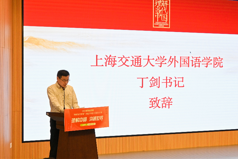 On November 4, the final of the 2023 FLTRP-Guocai Cup------Understanding Contemporary China National College Students' Foreign Language Proficiency Competition English Speech Contest Shanghai Division took place in Shanghai Jiao Tong University. The competition was sponsored by Shanghai Jiao Tong University and Shanghai College English Teaching Research Association, co-organized by Foreign Language Teaching and Research Press, and hosted by the School of Foreign Languages, Shanghai Jiao Tong University. Ding Jian, Secretary of the Party Committee of the School of Foreign Languages of Shanghai Jiao Tong University, Kong Yingying, researcher of the Higher Education Office of Shanghai Municipal Education Commission, and Wang Yue, deputy director of the Higher Cluster Marketing Center of Foreign Language Teaching and Research Press, attended the opening ceremony and delivered speeches.