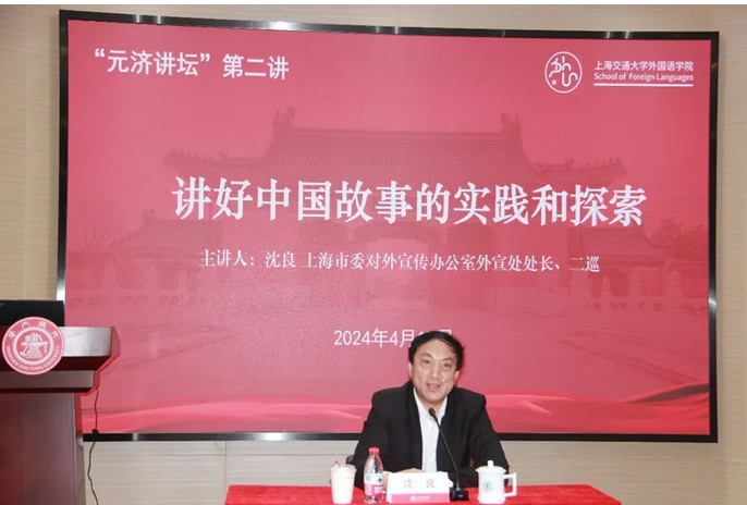 In the afternoon, Shen Liang delivered a lecture with the theme of "Practice and Exploration of telling Chinese stories well" as the second lecture of Yuanji Forum in the School of Foreign Languages of SJTU, analyzing the methods and strategies of telling Chinese stories well.