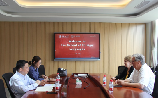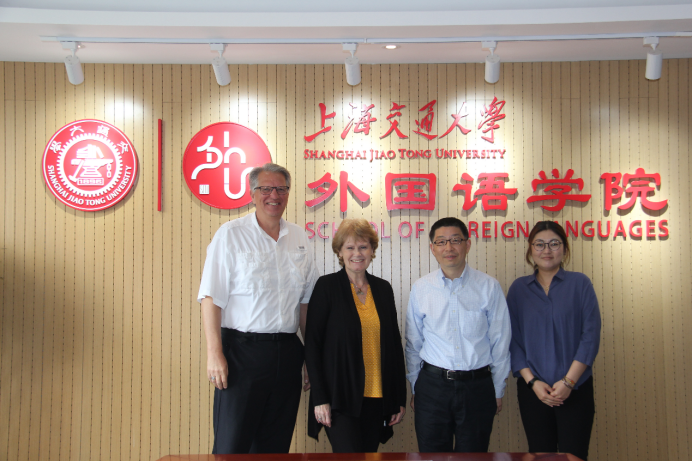 On May 20, Ms. Judy Jessiman Batschi, deputy director of the Kennedy Center at Brigham Young University, and Mr. Matthew Jordan Batschi visited the School of Foreign Languages to carry out exchanges, and in-depth discussions on faculty exchanges and cooperation intentions. Tao Qing, Vice Dean of the School of Foreign Languages, Zhang Xin, Secretary of Foreign Affairs and relevant staff of the Office of Foreign Cooperation and Exchange received the visiting guests.