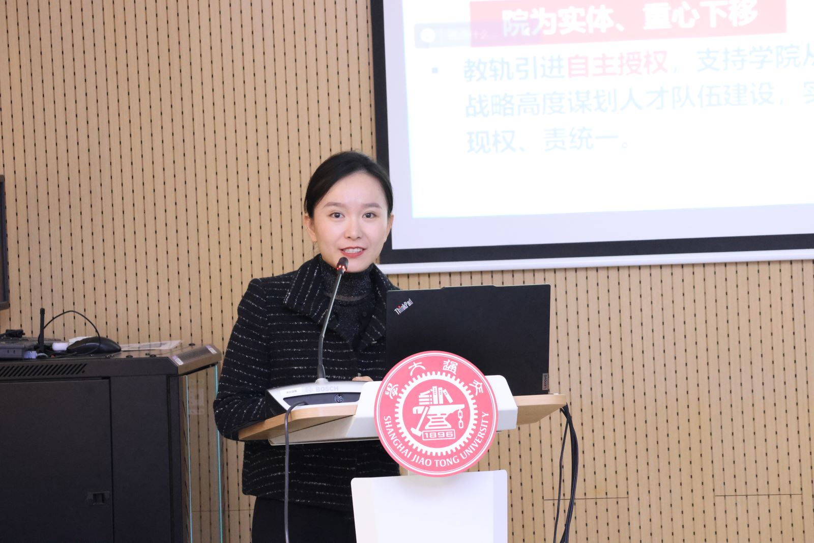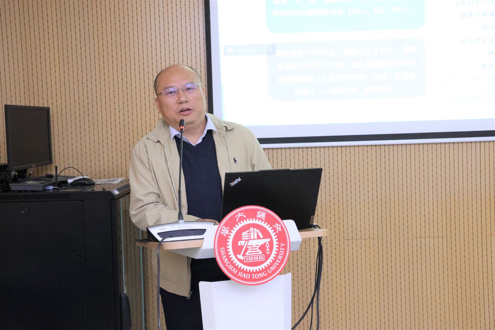 Shang Biwu delivered a presentation titled "Driving Development Through Pragmatic Action, Forging Ahead to Open New Horizons", providing an overview of the School of Foreign Languages. He introduced the school's progress and achievements in various aspects, including its development, disciplinary characteristics, organized research, talent cultivation, social services, and faculty development. Shang emphasized that the school remains committed to the development philosophy of "Pursuing Truth and Pragmatism, Continuing Endeavors". It will steadily implement strategic initiatives such as prioritizing education, strengthening the school through talent, and fostering interdisciplinary innovation. These efforts aim to contribute the strength of the School of Foreign Languages at Shanghai Jiao Tong University to the university, society, and the nation.