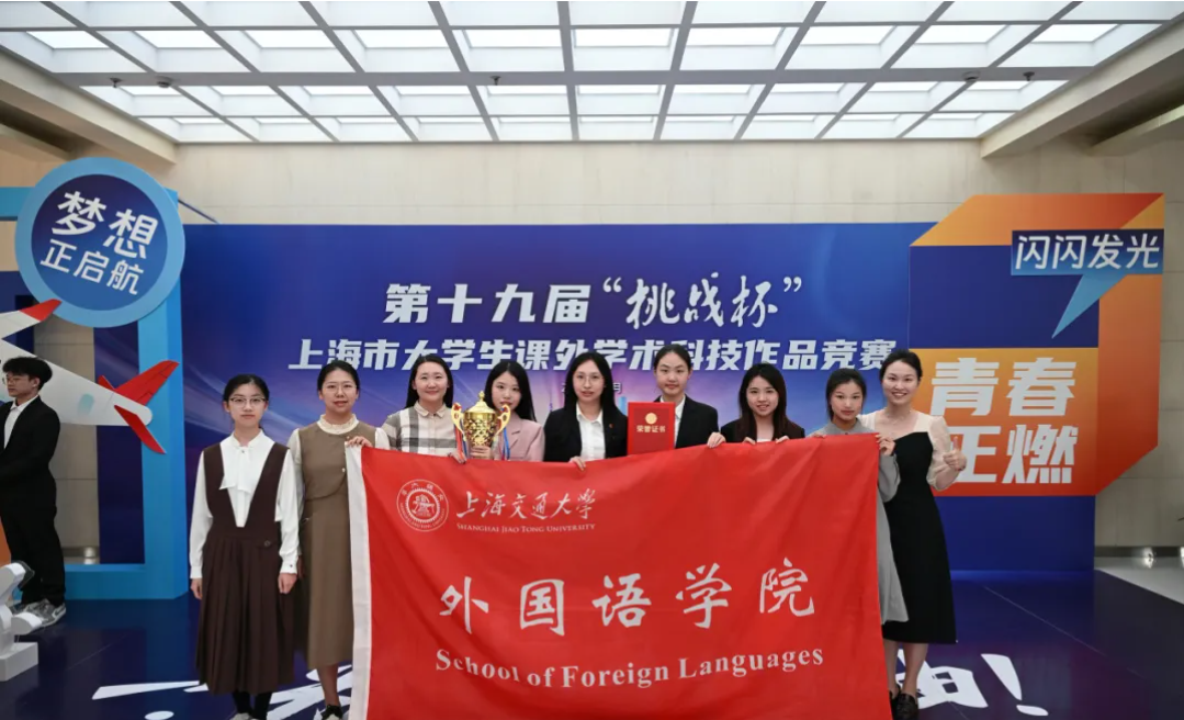 On May 25, 2025, the 19th "Challenge Cup" Shanghai College Students' Extracurricular Academic and Technological Works Competition concluded successfully at Shanghai University of Science and Engineering. The undergraduate team from the School of Foreign Languages of Shanghai Jiao Tong University, guided by Assistant Professor Lin Yi and Tenured Professor Ding Hongwei, emerged victorious after intense competition and won the grand prize, setting a new record for the best performance in the SFL history!