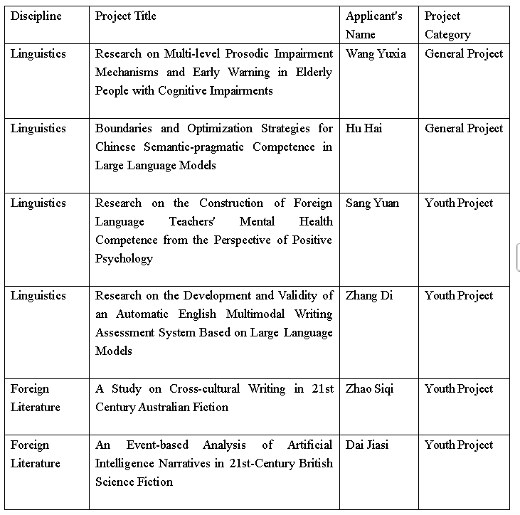 Recently, the list of approved projects for the 2025 National Social Science Fund Annual Program was announced, with 6 faculty members from the School of Foreign Languages at Shagnhai Jiao Tong University securing funding. The specific list is as follows: